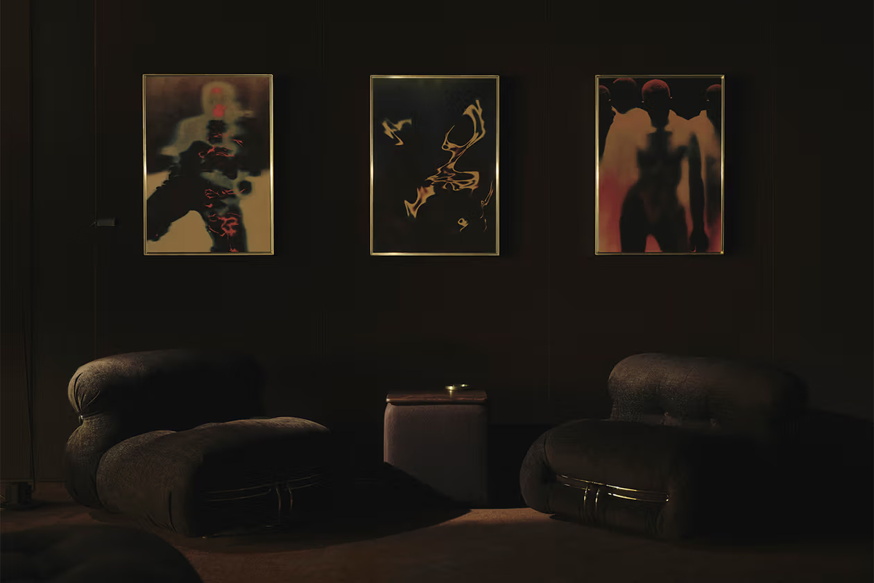 Three pieces are permanently installed in the space, integrated into a setting defined by warm tones, soft textures, and a carefully tuned sound system.